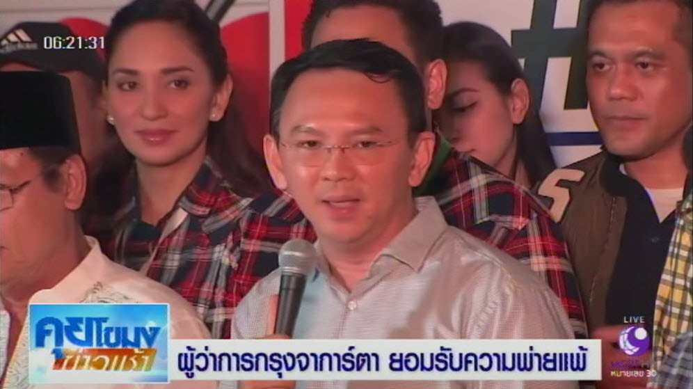 นายบาสุกิ ทจาฮาจา ปูร์นามา หรือที่รู้จักกันในชื่อว่า อาฮก ผู้ว่าการกรุงจาการ์ตา ที่เป็นชาวคริสต์และมีเชื้อสายจีนคนแรก ประกาศออกโทรทัศน์ยอมรับความพ่ายแพ้ หลังผลโพลสำรวจหน้าคูหา (เอ็กซิทโพล) พบว่านายอาเนียส รัสยิด บัสเวดาน ผู้สมัครคู่แข่งที่เป็นชาวมุสลิมและเป็นอดีตรัฐมนตรีกระทรวงศึกษาธิการ มีคะแนนนำทิ้งห่าง แม้จะต้องรอถึงต้นเดือน พ.ค. จึงจะทราบผลเลือกตั้งผู้ว่าการกรุงจาการ์ตารอบสองชี้ขาดได้ก็ตาม ผู้ว่าการคนใหม่มีกำหนดขึ้นรับตำแหน่งในเดือน ต.ค.นี้
