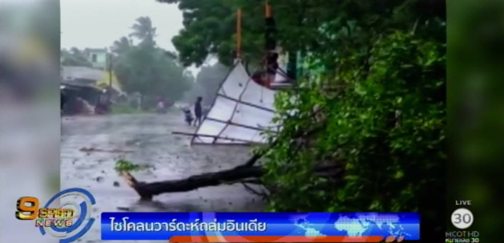 อินเดีย 13 ธ.ค. – ความรุนแรงของไซโคลนวาร์ดะห์ที่โหมกระหน่ำชายฝั่งตะวันออกเฉียงใต้ของอินเดีย ด้วยกำลังลม 140 กิโลเมตร/ชั่วโมง ทำให้มีผู้เสียชีวิตแล้วอย่างน้อย 4 ราย ต้นไม้และเสาไฟฟ้าจำนวนมากหักโค่น ชาวบ้านกว่า 23,000 คน ต้องอพยพไปยังที่พักฉุกเฉิน เที่ยวบินที่ท่าอากาศยานเจนไน และรถไฟในเมืองหลวงของรัฐทมิฬนาฑู ถูกระงับ โรงเรียนหลายแห่งต้องหยุดการเรียนการสอน ทางการประกาศเตือนชาวประมงห้ามนำเรือออกจากฝั่งเป็นเวลา 36 ชั่วโมง พร้อมแนะนำให้ประชาชนอยู่ในที่ปลอดภัย. – สำนักข่าวไทย