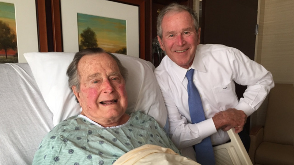 อดีตประธานาธิบดีบุชโพสต์ลงทวิตเตอร์ของเขาเมื่อวันพฤหัสบดี ด้วยภาพที่เขากับอดีตประธานาธิบดีบุชผู้พ่อยิ้มด้วยกัน ขณะที่อดีตผู้นำสหรัฐต้องพักอยู่ที่โรงพยาบาลฮิวสตันต่อไปอีก 1 วัน เพื่อติดตามอาการภายหลังจากมีภาวะปอดอักเสบแต่อยู่ในขั้นไม่รุนแรง โฆษกครอบครัวบุชรายงานว่า อดีตประธานาธิบดีบุชผู้พ่อในวัย 92 ปีแข็งแรงขึ้นและมีกำลังใจดี หลังจากเข้ารักษาตัวที่โรงพยาบาลฮิวสตันเมโธดิสต์ตั้งแต่เมื่อวันศุกร์ที่แล้ว เพื่อรักษาอาการไอเรื้อรัง แพทย์วินิจฉัยว่าเขาเป็นโรคปอดอักเสบ และได้รับการรักษาแล้ว อดีตประธานาธิบดีบุชผู้เป็นบิดาดำรงตำแหน่งระหว่างปี 2532-2536 ส่วนอดีตประธานาธิบดีบุช บุตรชายของเขาอยู่ในตำแหน่งช่วงปี 2544-2552 .-สำนักข่าวไทย