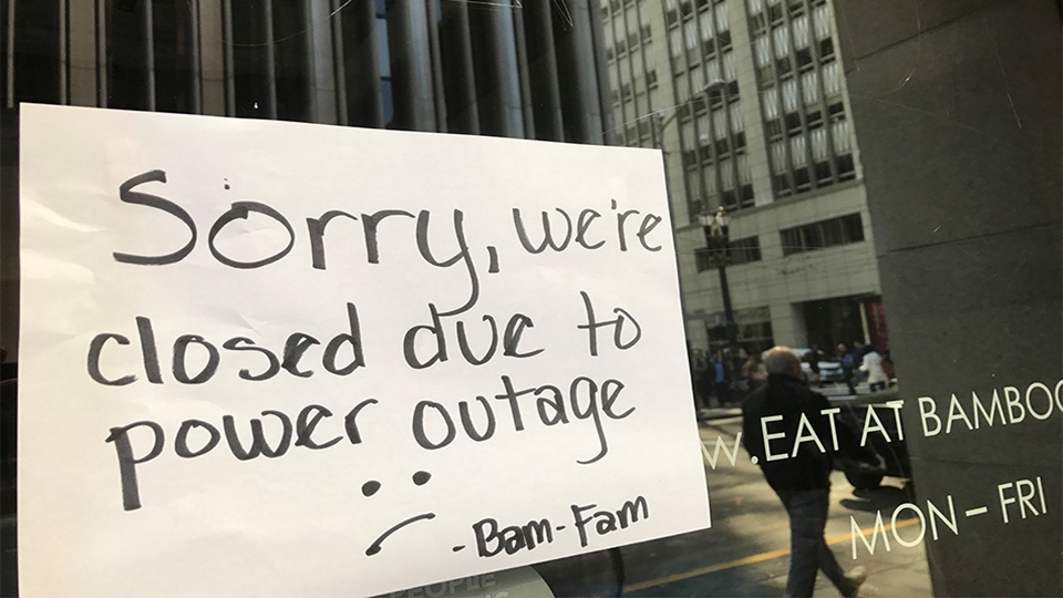 เหตุเกิดตั้งแต่ช่วงสายจนถึงเย็นวันศุกร์ตามเวลาท้องถิ่น โฆษกบริษัทแก๊สและไฟฟ้าแปซิฟิกแถลงขอโทษลูกค้า 88,000 รายในย่านใจกลางเมืองที่ไม่มีไฟฟ้าใช้ เบื้องต้นทราบว่าเกิดจากอุปกรณ์ขัดข้อง แต่ยังเร็วเกินไปที่จะคาดการณ์สาเหตุอย่างเจาะจง และได้เกิดไฟไหม้ตามมาหลังจากนั้น ไฟฟ้าดับทำให้สัญญาณไฟจราจรใช้การไม่ได้ ร้านรวงมืด สถานีรถไฟใต้ดินปิดชั่วคราว พนักงานบริษัทหลายคนถือโอกาสออกจากที่ทำงานมาเดินเล่นเนื่องจากท้องถนนมีการจราจรเบาบางกว่าวันทำงานปกติ หลายคนยังสามารถจับจ่ายด้วยการจ่ายเป็นเงินสดหรือบัตรผ่านสมาร์ทโฟนและแท็บเล็ต