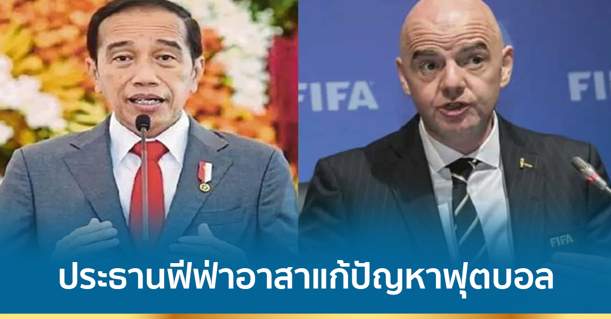 จาการ์ตา 5 ต.ค.- ประธานาธิบดีโจโก วิโดโดของอินโดนีเซียเผยว่า ประธานสหพันธ์ฟุตบอลนานาชาติหรือฟีฟ่า (FIFA) ได้อาสาช่วยแก้ปัญหาฟุตบอลของอินโดนีเซียในระหว่างที่สนทนากันเรื่องโศกนาฏกรรมที่สนามฟุตบอลเมื่อวันเสาร์ที่ผ่านมา