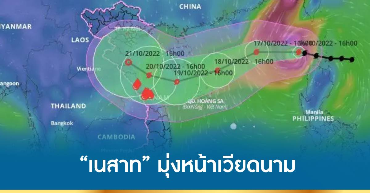 วีเอ็นเอ็กซ์เพรสส์ระบุว่า สำนักอุตุนิยมวิทยาญี่ปุ่นและหอสังเกตการณ์ฮ่องกงพยากรณ์ตรงกันว่า พายุจะมุ่งหน้าไปยังชายฝั่งตอนกลางของเวียดนามและจะขึ้นฝั่งพื้นที่ตอนกลางค่อนไปทางเหนือ และจะมีกำลังแรงสุดที่ 145 กิโลเมตรต่อชั่วโมงในวันอังคาร พายุเนสาทเป็นพายุที่เข้าน่านน้ำเวียดนามเป็นลูกที่ 6 แล้วของปีนี้ ตามหลังพายุโซนร้อนเซินกา (Son Ca) ที่เพิ่งกระหน่ำทางตอนกลางของเวียดนามเมื่อเช้ามืดวันเสาร์ และทำให้ฝนตกตั้งแต่เวลา 19:00 น.วันศุกร์จนถึงเวลา 06:00 วันเสาร์ วัดปริมาณน้ำฝนได้มากถึง 795 มิลลิเมตร เป็นเหตุให้เมืองดานัง แหล่งท่องเที่ยวชื่อดังเกิดน้ำท่วมหนักมากเป็นประวัติการณ์.-สำนักข่าวไทย