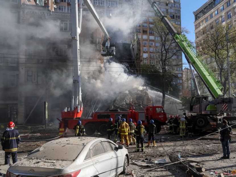 รอยเตอร์อ้างผู้เห็นเหตุการณ์ว่า ได้ยินเสียงระเบิดทั้งหมด 3 ครั้ง หนึ่งในนั้นเป็นขีปนาวุธยิงอพาร์ตเมนต์ย่านใจกลางเมืองพังเสียหายจนเหลือแต่ซากไปแถบหนึ่ง และเห็นนักดับเพลิงกู้ร่างชายคนหนึ่งออกจากซากปรักหักพัง การโจมตีวันนี้เกิดขึ้นหลังจากเมื่อวานนี้รัสเซียได้ใช้ปฏิบัติการโจมตีทางอากาศในกรุงเคียฟและอีกหลายเมืองในยูเครน มีคนเสียชีวิตอย่างน้อย 4 คน เป็นการโจมตีทางอากาศระลอกที่ 2 ในรอบ 1 สัปดาห์ เพื่อตอบโต้ที่ยูเครนยึดคืนเมืองทางตะวันออกและทางใต้จากรัสเซีย และเหตุสะพานเชื่อมไครเมียระเบิดเมื่อวันที่ 8 ตุลาคม ประธานาธิบดีโวโลดีมีร์ เซเลนสกีของยูเครนระบุในคลิปเมื่อเย็นวันจันทร์ว่า รัสเซียหันมาใช้อากาศยานไร้คนขับหรือโดรนโจมตียูเครน และถูกยูเครนยิงโดรนตกเป็นจำนวนมาก