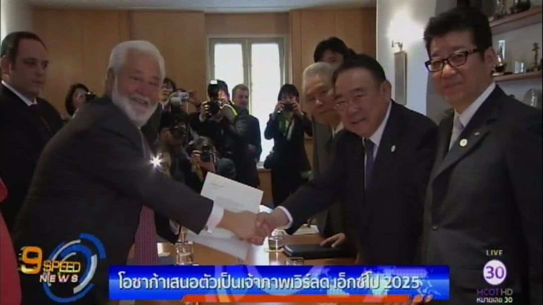 ญี่ปุ่น 25 เม.ย.-ผู้ว่าราชการเมืองโอซาก้า และประธานสหพันธ์ธุรกิจญี่ปุ่น ยื่นเรื่องเสนอตัวขอเป็นเจ้าภาพงานเวิลด์เอ็กซ์โป 2025 อย่างเป็นทางการ ต่อเลขาธิการสำนักงานมหกรรมโลก หรือบีไออี ที่กรุงปารีสของฝรั่งเศส ขณะที่ฝรั่งเศสก็ยื่นเรื่องของเป็นเจ้าภาพเช่นกัน ทั้งนี้ ประเทศสมาชิกบีไออีจะมีการลงมติเลือกประเทศเจ้าภาพเวิลด์ เอ็กซ์โป 2025 ในการประชุมใหญ่ที่จะมีขึ้นในปีหน้า.-สำนักข่าวไทย
