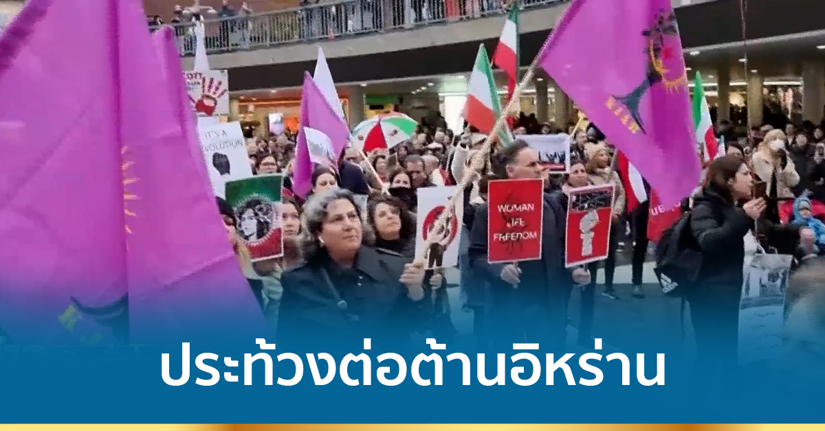 สวีเดน 23 ต.ค.- กลุ่มผู้ประท้วงชุมนุมที่กรุงสตอกโฮล์ม เพื่อต่อต้านรัฐบาลอิหร่าน และแสดงพลังสนับสนุนการชุมนุมประท้วงในอิหร่านที่เกิดขึ้นต่อเนื่องเป็นสัปดาห์ที่ 6 แล้ว