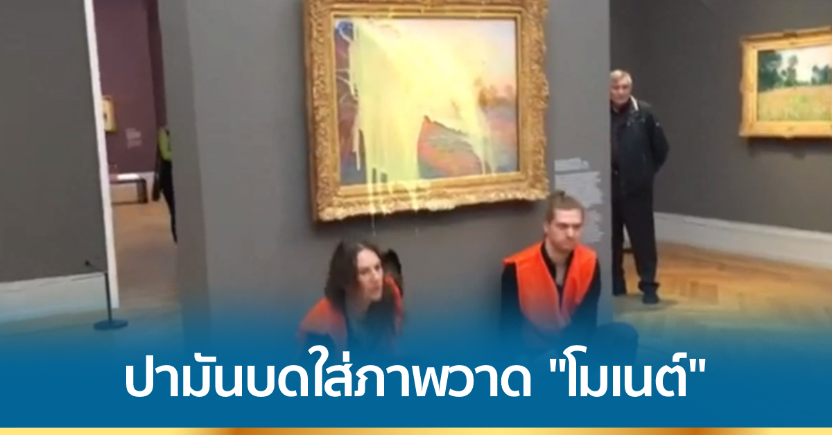 25 ต.ค. – นักเคลื่อนไหวต้านโลกร้อนออกมาทำกิจกรรมประท้วงเรียกร้องความสนใจต่อเนื่อง ล่าสุด 2 นักเคลื่อนไหวด้านโลกร้อนบุกเข้าไปปามันบดใส่ภาพวาดของโมเนต์ ศิลปินดัง ในพิพิธภัณฑ์ที่เยอรมนี
