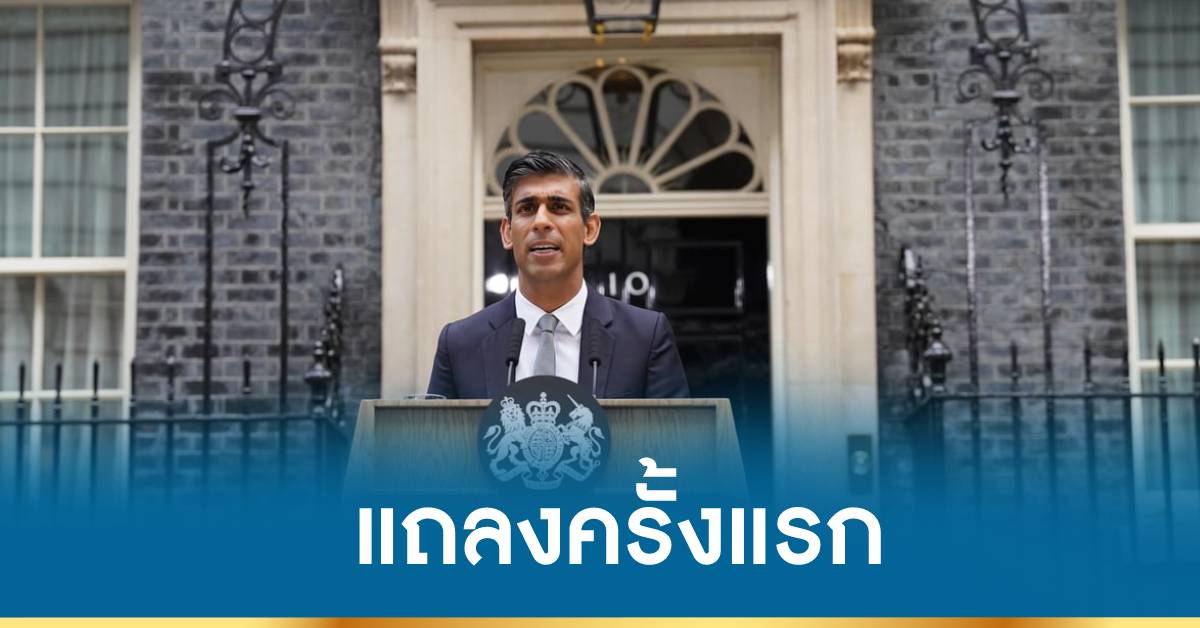 จากนั้น นายซูนัคได้แถลงเป็นครั้งแรกที่หน้าทำเนียบนายกรัฐมนตรี บ้านเลขที่ 10 ถนนดาวนิ่ง ว่า เขาจะให้ความสำคัญในการสร้างเสถียรภาพและความสามัคคีในประเทศเป็นอันดับแรก เพราะขณะนี้มีปัญหาใหญ่หลวงด้านเศรษฐกิจที่ต้องเร่งดำเนินการแก้ไข เขาได้รับเลือกให้เป็นหัวหน้าพรรคอนุรักษ์นิยม เพื่อแก้ไขปัญหาความผิดพลาดของลิซ ทรัสส์ อดีตนายกรัฐมนตรี และว่า เขาจะรีบตั้งคณะรัฐมนตรีชุดใหม่ เพื่อแก้ปัญหาเศรษฐกิจและการเมือง ซูนัค ยังบอกด้วยว่า เขาจะไม่ท้อถอยต่อปัญหา และจะฟื้นฟูความไว้วางใจ กับความเชื่อมั่นให้กลับคืนมา รวมถึงนำพาสหราชอาณาจักรฝ่าวิกฤตเศรษฐกิจ ไปสู่อนาคตที่ดีกว่า และจะสร้างรัฐบาลที่ทำหน้าที่แทนพรรคอนุรักษ์นิยมให้ดีที่สุด