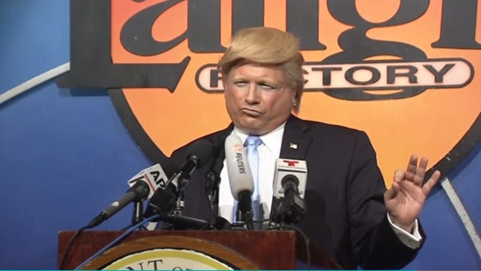 สมาคม Laugh Factory จัดการประกวดที่นครลอสแอนเจลิส รัฐแคลิฟอร์เนียเมื่อวันพุธตามเวลาสหรัฐ หาผู้ที่เลียนแบบประธานาธิบดีทรัมป์ได้เหมือนที่สุด มีผู้แข่งขันทั้งหมด 10 คน หนึ่งในนั้นเป็นผู้หญิง และมีบางคนเดินทางไกลมาจากนิวซีแลนด์ ทั้งหมดแต่งตัวทำผมเลียนแบบทรัมป์ มีเวลาพูดและแสดงหลังแท่นคนละ 2 นาทีในหัวข้อต่าง ๆ เช่น ระบบประกันสุขภาพโอบามาแคร์ การทิ้งระเบิดถล่มซีเรีย กำแพงเม็กซิโก และจีน ผู้ชนะคือนายจอห์น ดี โดเมนนิโก ชายชาวลาสเวกัสที่ฝึกเลียนแบบคนอื่นเพราะมีปัญหาในการพูดตั้งแต่เด็ก เขามีรายได้จากการเลียนแบบทรัมป์มาตั้งแต่ปี 2547 สำหรับรางวัลจากเวทีนี้คือ ได้เป็นพิธีกรรายการ Fake News/Real News ในเว็บไซต์ของสมาคม และได้รับเชิญเป็นนักแสดงนำในทุกรายการที่เป็นสมาชิกสมาคม