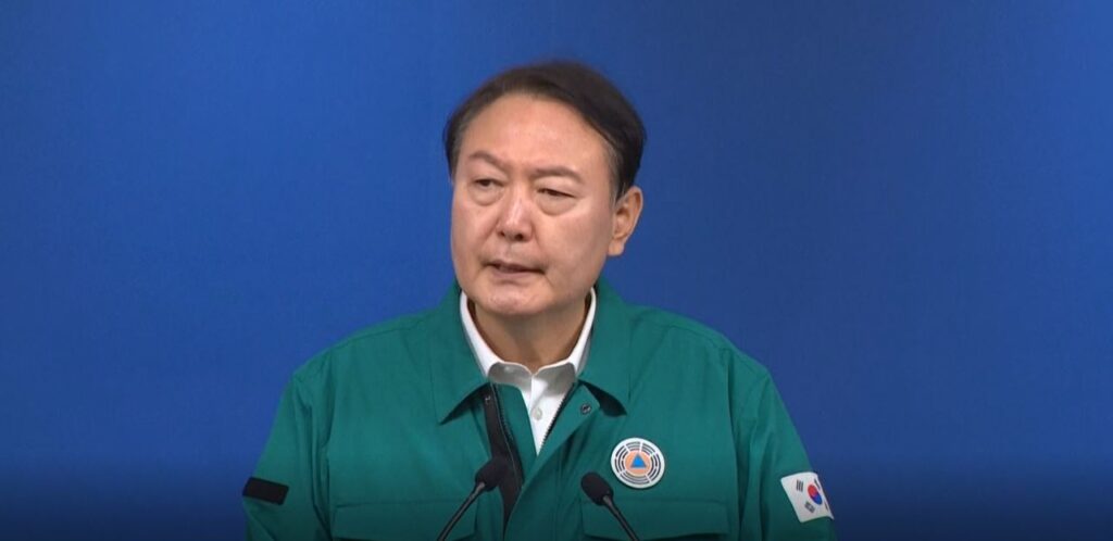 ขณะที่เมื่อช่วงสายที่ผ่านมาตามเวลาท้องถิ่น ประธานาธิบดียุน ซอค-ยอล ผู้นำเกาหลีใต้ เดินทางไปตรวจสอบสถานที่เกิดเหตุด้วยตนเอง หลังจากคืนที่ผ่านมาได้เรียกประชุมฉุกเฉินเจ้าหน้าที่ผู้เกี่ยวข้อง เพื่อรับมือเหตุฉุกเฉินร้ายแรงที่เกิดขึ้น และสั่งการให้เร่งช่วยเหลือทั้งผู้ได้รับบาดเจ็บและเยียวยาผู้ได้รับผลกระทบทุกฝ่าย โดยเฉพาะผลกระทบด้านจิตใจของผู้ที่อยู่ในเหตุการณ์