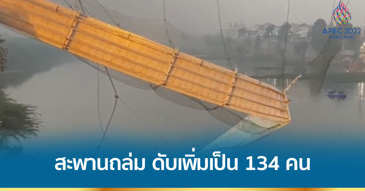 เหตุการณ์สะพานแขวนสำหรับคนเดินเท้าในเมืองโมรพี รัฐคุชราต ทางภาคตะวันตก พังถล่มเมื่อช่วงค่ำวานนี้ (30 ต.ค.) ล่าสุดยอดผู้เสียชีวิตเพิ่มขึ้นเป็นอย่างน้อย 134 คนแล้ว และยังมีผู้สูญหายอีกจำนวนหนึ่งที่ยังไม่สามารถระบุตัวเลขได้ เจ้าหน้าที่เชื่อว่าน่าจะยังมีคนติดอยู่ใต้สะพานที่จมอยู่ใต้น้ำ เจ้าหน้าที่กู้ภัยยังคงเดินหน้าค้นหา โดยมีทหารเข้ามาช่วยเหลือ แต่สภาพของน้ำที่ขุ่นจัดทำให้การค้นหาเป็นไปอย่างยากลำบาก