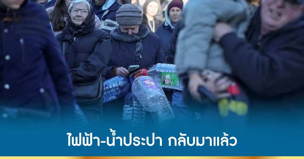 นายวิตาลี คลิตช์โก นายกเทศมนตรีกรุงเคียฟ เผยเมื่อวันอังคารตามเวลาท้องถิ่นว่า ระบบไฟฟ้าและน้ำประปาในกรุงเคียฟกลับมาเป็นปกติแล้ว แต่มีบางพื้นที่ยังคงประสบปัญหาไฟดับ เนื่องจากจำเป็นต้องบริหารจัดการไฟฟ้าให้เพียงพอต่อความต้องการของประชาชน ก่อนหน้านี้ มีพื้นที่ร้อยละ 80 ของกรุงเคียฟที่ประสบปัญหาขาดแคลนน้ำประปา และมีครัวเรือนจำนวนมากต้องใช้ชีวิตท่ามกลางไฟดับ จนทำให้ประชาชนต้องออกมาต่อแถวยาวเหยียดเพื่อรองน้ำจากเครื่องปั๊มน้ำจากบ่อน้ำ