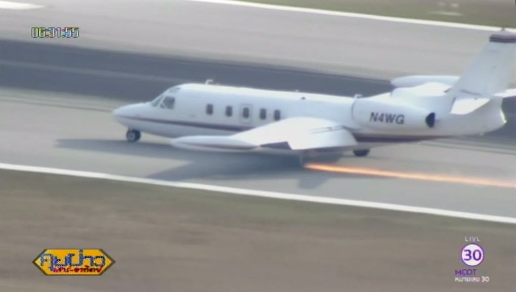 เจ้าหน้าที่ฉุกเฉินที่รออยู่แล้วรีบเข้าไปช่วยเหลือคนบนเครื่องบินทันที ผู้โดยสารทั้ง 4 คนบนเครื่องพร้อมกับนักบินปลอดภัย ไม่มีผู้ได้รับบาดเจ็บ นักบินบอกว่าต้องบินวนรอบสนามบินหลายรอบเพื่อเผาเชื้อเพลิงให้หมด จะได้ไม่เกิดไฟลุกเมื่อลงจอดฉุกเฉิน. – สำนักข่าวไทย