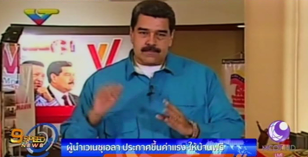 เวเนซุเอลา 1 พ.ค. – ประธานาธิบดีนิโคลัส มาดูโร ของเวเนซุเอลา ประกาศขึ้นค่าจ้างขั้นต่ำร้อยละ 60 โดยให้มีผลในวันนี้ นับเป็นการปรับขึ้นค่าจ้างขั้นต่ำเป็นครั้งที่ 3 แล้วในรอบปีนี้ ท่ามกลางอัตราเงินเฟ้อของประเทศที่เพิ่มขึ้นไปอยู่ที่ตัวเลขสามหลัก