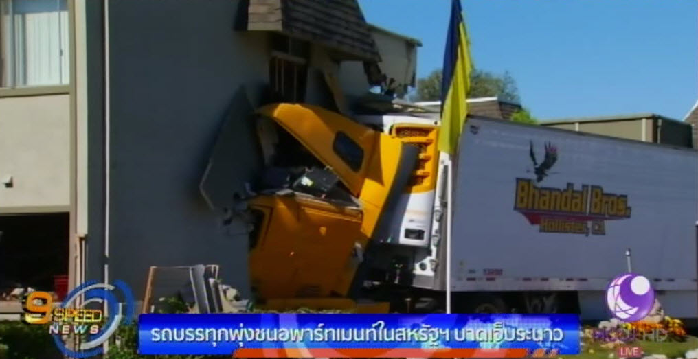 สหรัฐ 1 พ.ค. – รถบรรทุกขนาดใหญ่พุ่งชนอาคารที่พักอาศัยในเมืองฟูลเลอร์ตัน รัฐแคลิฟอร์เนีย ของสหรัฐ ทำให้มีผู้บาดเจ็บหลายคน ในจำนวนนี้มีเด็กทารก รวมอยู่ด้วย 1 คน และยังทำให้อีกหลายคนต้องไร้ที่อยู่อาศัย เพราะตัวอาคารได้รับความเสียหาย