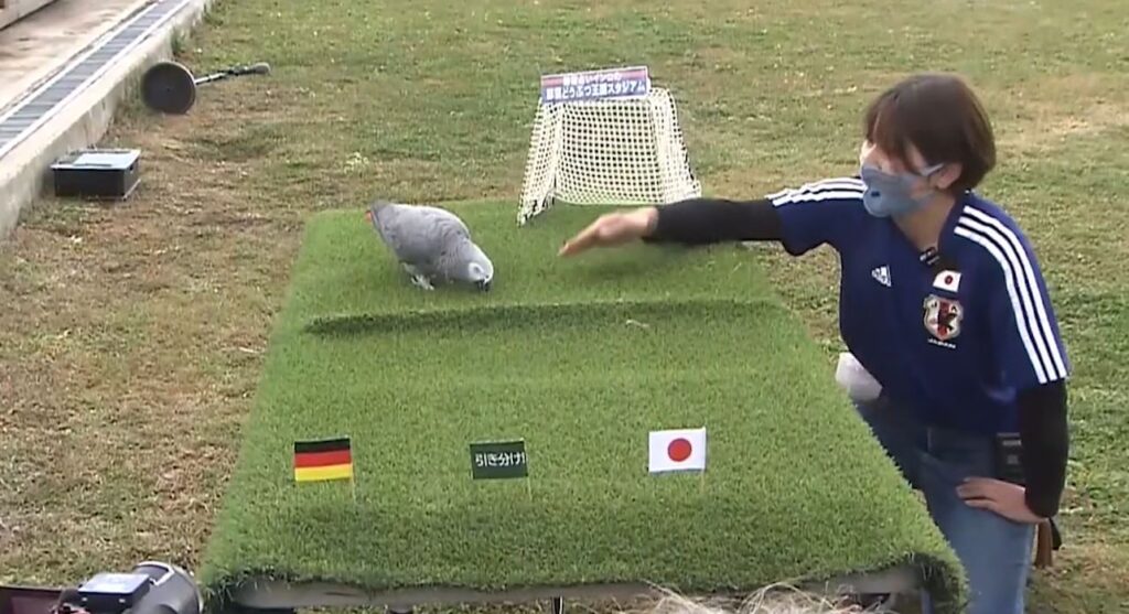 เจ้าโอลิเวีย นกแก้วแสนรู้ อายุ 17 ปี จากจังหวัดโทะชิงิ ประเทศญี่ปุ่น มีประสบการณ์ในการทำนายผลการแข่งขันกีฬามาร่วม 8 ปีแล้ว คราวนี้มันได้รับหน้าที่ทำนายผลการแข่งขันของทีมชาติญี่ปุ่นในศึกฟุตบอลโลกรอบสุดท้าย ที่ในปีนี้พวกเขาอยู่ร่วมสายกับสองทีมแข็งจากยุโรป ทั้งเยอรมนีและสเปน รวมถึงคอสตาริกา โดยเตรียมลงสนามนัดแรกพบกับเยอรมนีในวันนี้