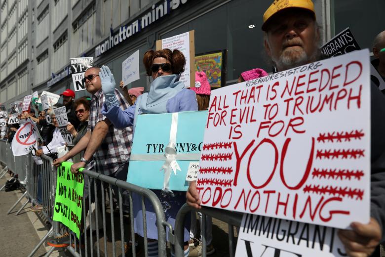 นิวยอร์ก 5 พ.ค. – ประธานาธิบดีโดนัลด์ ทรัมป์ ของสหรัฐ เดินทางกลับไปยังบ้านของเขาในนครนิวยอร์กเป็นครั้งแรกนับตั้งแต่เข้ารับตำแหน่งผู้นำสหรัฐเมื่อวานนี้ เพื่อพบปะหารือกับนายกรัฐมนตรีมัลคอล์ม เทิร์นบูล ของออสเตรเลีย โดยมีผู้ประท้วงหลายร้อยคนชุมนุมต่อต้านนโนบายของนายทรัมป์