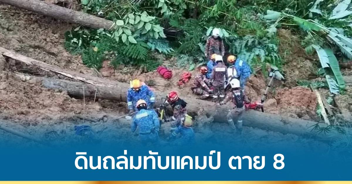 กัวลาลัมเปอร์ 16 ธ.ค. – เกิดเหตุดินถล่มบริเวณสถานที่ตั้งแคมป์แห่งหนึ่งในรัฐสลังงอร์ของมาเลเซียเมื่อช่วงเช้ามืดของวันนี้ ทำให้มีผู้เสียชีวิตอย่างน้อย 8 คน และผู้บาดเจ็บ 7 คน