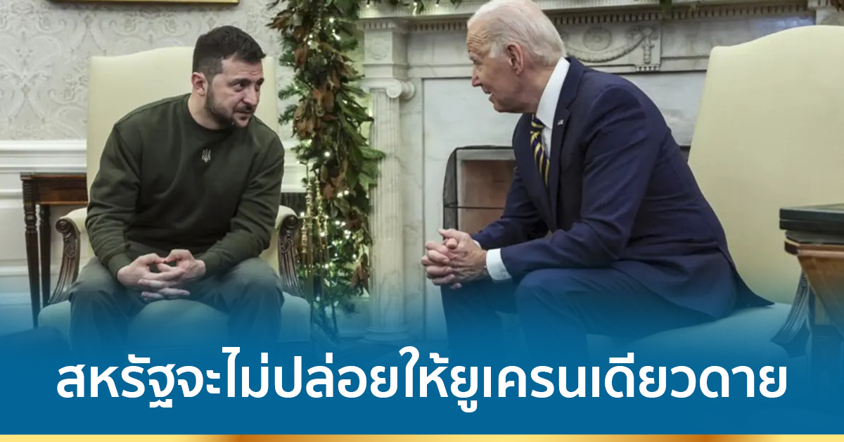 วอชิงตัน 22 ธ.ค. – ประธานาธิบดีโจ ไบเดน ของสหรัฐ กล่าวกับประธานาธิบดีโวโลดีมีร์ เซเลนสกี ของยูเครนว่า สหรัฐจะยังคงให้ความช่วยเหลือยูเครนตราบนานเท่านานในสงครามกับรัสเซีย และยูเครนจะไม่มีวันถูกทอดทิ้งให้โดดเดี่ยวเดียวดาย