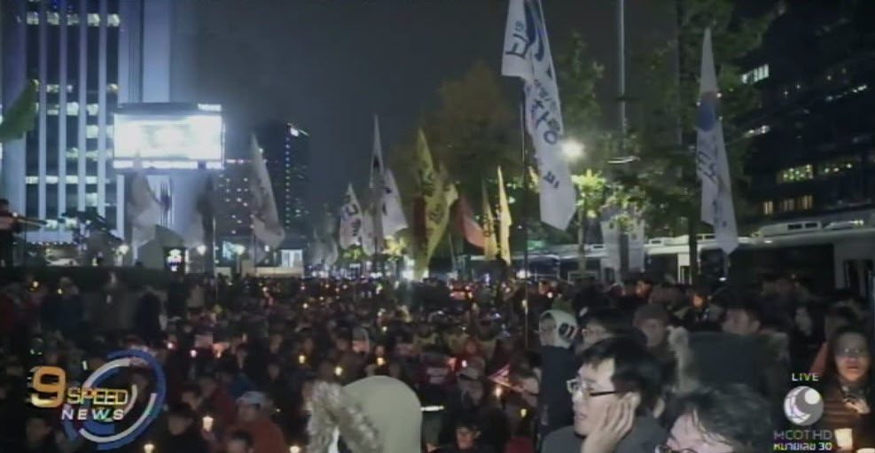 ชาวเกาหลีใต้จำนวนมากร่วมชุมนุมกันตามท้องถนนในกรุงโซล เพื่อแสดงความไม่พอใจต่อเรื่องอื้อฉาวของนางชเว ซุน ซิล เพื่อนสนิทของประธานาธิบดีปัก กึน ฮเย ซึ่งมีข่าวว่าเข้าไปแทรกแซงการเมืองในเกาหลีใต้ นับเป็นการชุมนุมที่ใหญ่ที่สุด ตั้งแต่เรื่องอื้อฉาวนี้ถูกเปิดโปงขึ้นมา ด้านผู้จัดการชุมนุม กล่าวว่า มีผู้มาร่วมประท้วงไม่น้อยกว่า 200,000 คน