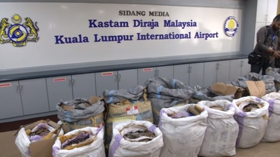 กัวลาลัมเปอร์ 8 พ.ค. – เจ้าหน้าที่ศุลกากรมาเลเซียตรวจยึดเกล็ดตัวนิ่มลักลอบนำเข้าได้มากสุดเป็นประวัติการณ์หนักกว่า 700 กิโลกรัม คิดเป็นมูลค่าสูงถึง 9.1848 ล้านริงกิต (กว่า 73 ล้านบาท)