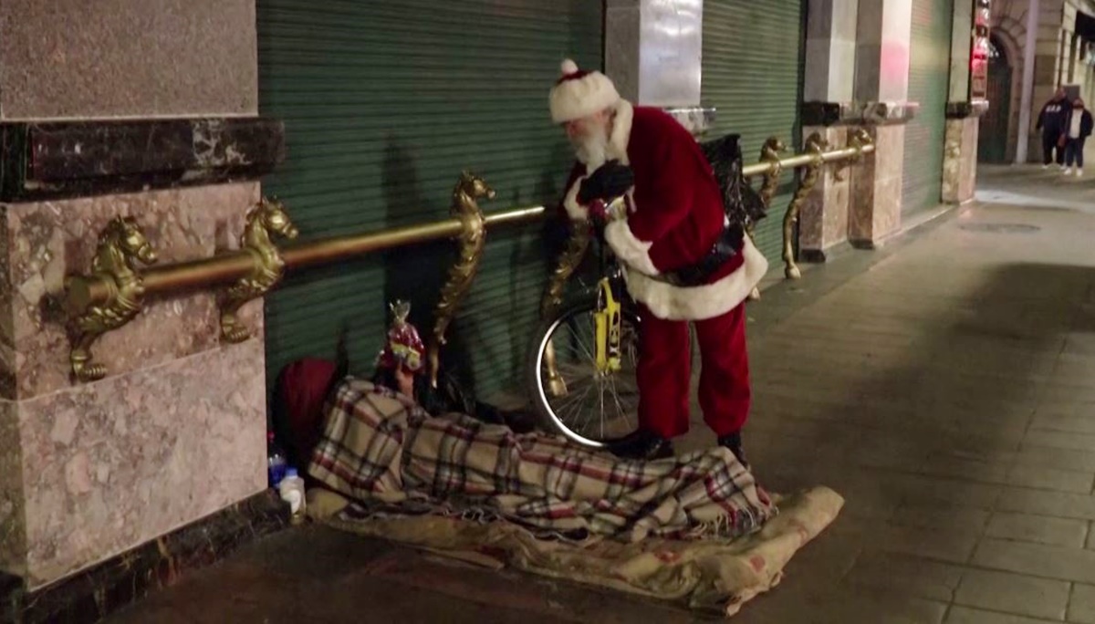 เม็กซิโก 25 ธ.ค. – ชายชาวเม็กซิโก วัย 60 ปี สวมชุดซานตาคลอส แจกของขวัญให้คนยากไร้และคนไร้บ้าน ในกรุงเม็กซิโก ซิตี้ ซึ่งเขาทำต่อเนื่องมา 9 ปีแล้ว