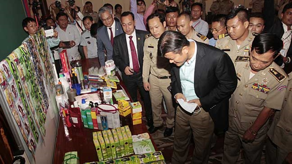ประธานคณะกรรมการปราบปรามสินค้าเถื่อนกัมพูชาแถลงว่า เครื่องสำอางปลอมที่ยึดมาได้ประกอบด้วย ผลิตภัณฑ์ย้อมผม ครีมทาผิวขาวใส และแชมพู ที่มีมูลค่ารวมหลายล้านดอลลาร์ เจ้าหน้าที่กล่าวว่า สินค้าเหล่านี้ผลิตในกัมพูชา แต่ตีตราว่าผลิตในญี่ปุ่น เกาหลีใต้ จีน สหรัฐ เยอรมนี และไทย บางผลิตภัณฑ์ใช้เครื่องหมายการค้าปลอมของบริษัทชิเซโด้ยี่ห้อดังจากญี่ปุ่น เจ้าหน้าที่กัมพูชาแถลงต่อผู้สื่อข่าวว่า ครั้งนี้นับเป็นการยึดสินค้าปลอมได้มากเป็นประวัติการณ์ของกัมพูชา โดยจับกุมผู้ต้องสงสัย 3 คน เป็นชาวจีน 2 คนระหว่างการบุกค้นโกดังในกรุงพนมเปญและจังหวัดกันดาลเมื่อเดือนมีนาคมและเมษายนหลังจากติดตามมาหลายเดือน และเจ้าหน้าที่จะตรวจสอบว่าสินค้าปลอมเหล่านี้เป็นอันตรายต่อสุขภาพด้วยหรือไม่ หลังจากที่มีข่าวลงหนังสือพิมพ์และเฟซบุ๊กว่า ผู้หญิงบางคนใช้โลชั่นสูตรผิวขาวใสแต่ได้รับผลข้างเคียง ทั้งเป็นผื่นแพ้รุนแรงและบางรายถึงขั้นเสียชีวิต ครีมทาให้ผิวขาวเป็นที่นิยมในกัมพูชาเพราะหลายคนเชื่อว่าจะทำให้มีผิวขาวใสและดูดีมีระดับตามแบบฉบับค่านิยมความงาม .- สำนักข่าวไทย