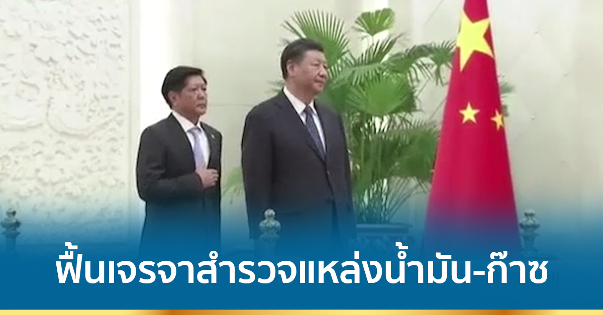 นายสี จิ้นผิง ประธานาธิบดีจีนระบุระหว่างการพบปะกับนายเฟอร์ดินานด์ มาร์กอส จูเนียร์ ประธานาธิบดีฟิลิปปินส์ที่กรุงปักกิ่งเมื่อวันพุธที่ผ่านมาว่า จีนพร้อมที่จะฟื้นการเจรจาเกี่ยวกับโครงการสำรวจแหล่งน้ำมันและก๊าซร่วมกับฟิลิปปินส์ โดยจะกระชับความสัมพันธ์ในระดับทวิภาคีในด้านพลังงาน โครงสร้างพื้นฐานและอื่นๆ รวมถึงความร่วมมือในการสำรวจแหล่งน้ำมันและก๊าซในพื้นที่ๆ ไม่ใช่ดินแดนภายใต้ข้อพิพาท ขณะที่ผู้สังเกตการณ์ระบุว่าจีนพยายามผลักดันความร่วมมือกับฟิลลิปินส์ในพื้นที่เหนือทะเลจีนใต้เพื่อตอบโต้สหรัฐ ซึ่งกำลังกระชับความสัมพันธ์กับฟิลิปปินส์ .-สำนักข่าวไทย