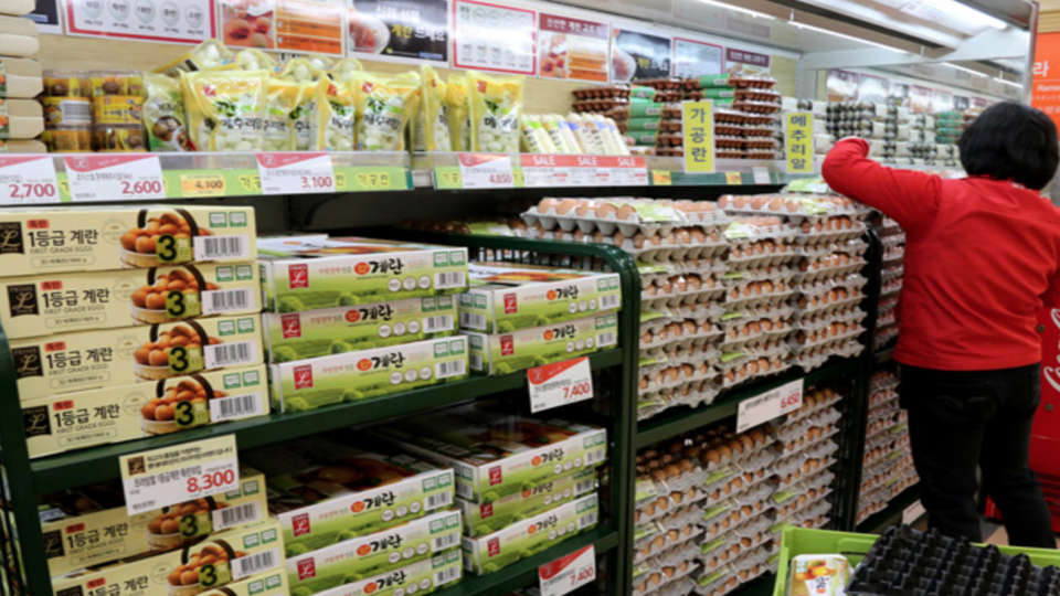 ราคาไข่ไก่ในเกาหลีใต้ปรับเพิ่มสูงขึ้นนับแต่เดือนพฤศจิกายนปีที่แล้ว หลังทางการสั่งกำจัดไก่จำนวนมาก เพื่อควบคุมการระบาดของไข้หวัดนก โดยทางการเผยว่า ราคาขายปลีกเฉลี่ยสำหรับไข่ไก่ 30 ฟองใน 1 ถาด ณ วันที่ 10 พฤษภาคม อยู่ที่ราว 7,900 วอน (เกือบ 245 บาท) เพิ่มขึ้นร้อยละ 5.3 จากราคาเมื่อเดือนที่แล้วและสูงกว่าราคาขายเมื่อปีที่แล้วเกือบครึ่ง ยิ่งไปกว่านั้น ยังพบว่า ซูเปอร์มาร์เก็ตบางแห่งตั้งราคาไข่ถาดละสูงกว่า 10,000 วอน (กว่า 300 บาท)