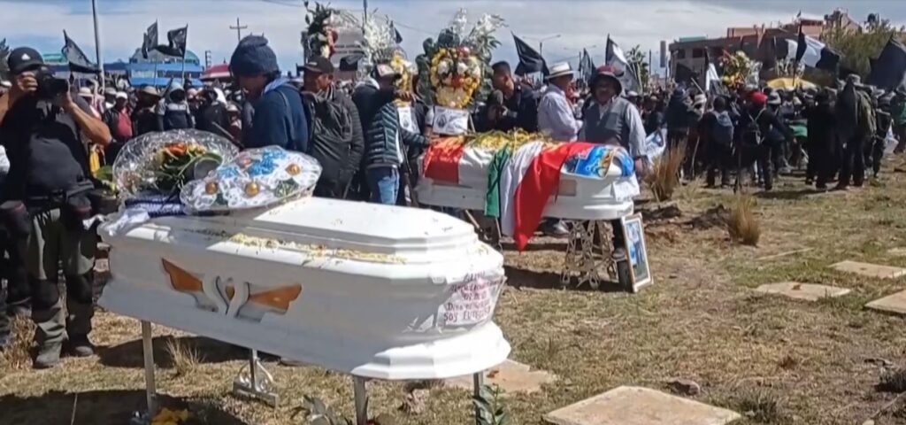 แม้ว่ารัฐบาลเปรูได้ประกาศเคอร์ฟิวในพื้นที่ภาคใต้เป็นเวลา 3 วัน เพื่อควบคุมสถานการณ์ แต่กลุ่มผู้ต่อต้านรัฐบาลยังคงเดินหน้าประท้วงอย่างต่อเนื่อง เมื่อวานนี้ผู้ชุมนุมพากันปิดถนน และมีการจัดพิธีศพให้แก่ผู้ที่เสียชีวิตจากเหตุการณ์ปะทะกับตำรวจในเมืองจูเลียกา เมื่อ 2 วันก่อน ซึ่งมีผู้เสียชีวิต 17 คน บรรดาผู้ประท้วงและสมาชิกในครอบครัวของผู้เสียชีวิตช่วยกันแบกโลงศพ ซึ่งคลุมด้วยธงชาติเปรูและมีข้อความติดเอาไว้ว่า พวกเขาถูกประธานาธิบดีดีนา โบลูอาร์เต เข่นฆ่า เข้าร่วมการชุมนุมด้วย