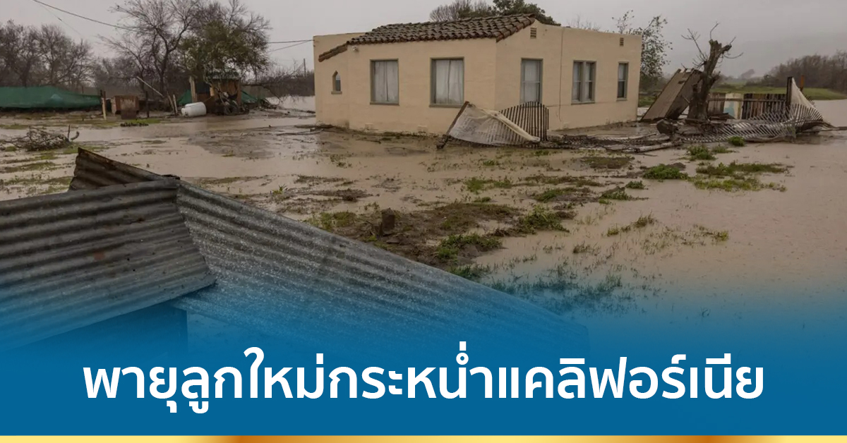แคลิฟอร์เนีย 15 ม.ค.- พายุลูกใหม่พัดกระหน่ำรัฐแคลิฟอร์เนียของสหรัฐเมื่อวันเสาร์ตามเวลาท้องถิ่น ทำให้เกิดน้ำท่วมใหญ่ในพื้นที่ที่มีน้ำท่วมหนักอยู่แล้ว และเสี่ยงทำให้บางพื้นที่มีหิมะตกหนาถึง 2 เมตร