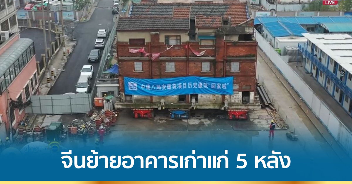 สำนักข่าวซินหัวของทางการจีนรายงานว่า คนงานชาวจีนช่วยกันเคลื่อนย้ายอาคารทางประวัติศาสตร์ 5 หลัง อายุเก่าแก่เกือบ 100 ปี กลับมายังสถานที่ตั้งเดิม ในนครเซี่ยงไฮ้ ทางตะวันออกของจีน ซึ่งใช้เวลารวมทั้งสิ้น 43 วัน หลังเริ่มดำเนินการเมื่อเดือน พ.ย.ปีที่แล้ว โดยระยะทางการเคลื่อนย้ายไกลที่สุดของอาคารหลังเดียวอยู่ที่ 230 เมตร