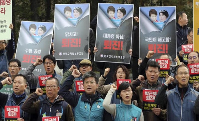 ตำรวจห้ามเดินขบวนตามท้องถนนโดยอ้างว่าจะทำให้การจราจรติดขัด แต่คาดว่าผู้ชุมนุมราว 40,000 คนจะหาทางเคลื่อนขบวนไปยังทำเนียบประธานาธิบดี ทางการจึงได้ประจำการตำรวจไว้ 20,000 นาย ส่วนเมื่อวานนี้ประธานาธิบดีปักวัย 64 ปี ได้แถลงขอโทษทั้งน้ำตาทางโทรทัศน์ว่าเรื่องอื้อฉาวที่เกิดขึ้นกับนางชเว ซูนซิล เป็นความผิดของเธอทั้งหมด แต่ยืนยันว่าเธอและเพื่อนสนิทวัย 60 ปี ไม่เกี่ยวข้องกับนิกายตามที่เป็นข่าว และพร้อมให้ปากคำในการสอบสวนคดีนางชเวถูกตั้งข้อหาฉ้อโกงและใช้อำนาจโดยมิชอบ นางชเวถูกจับกุมเมื่อวันพฤหัสบดีหลังจากถูกกล่าวหาว่าใช้ความเป็นเพื่อนสนิทประธานาธิบดีบังคับบริษัทใหญ่ ๆ บริจาคเงินเข้ามูลนิธิแล้วนำไปใช้ในเรื่องส่วนตัว