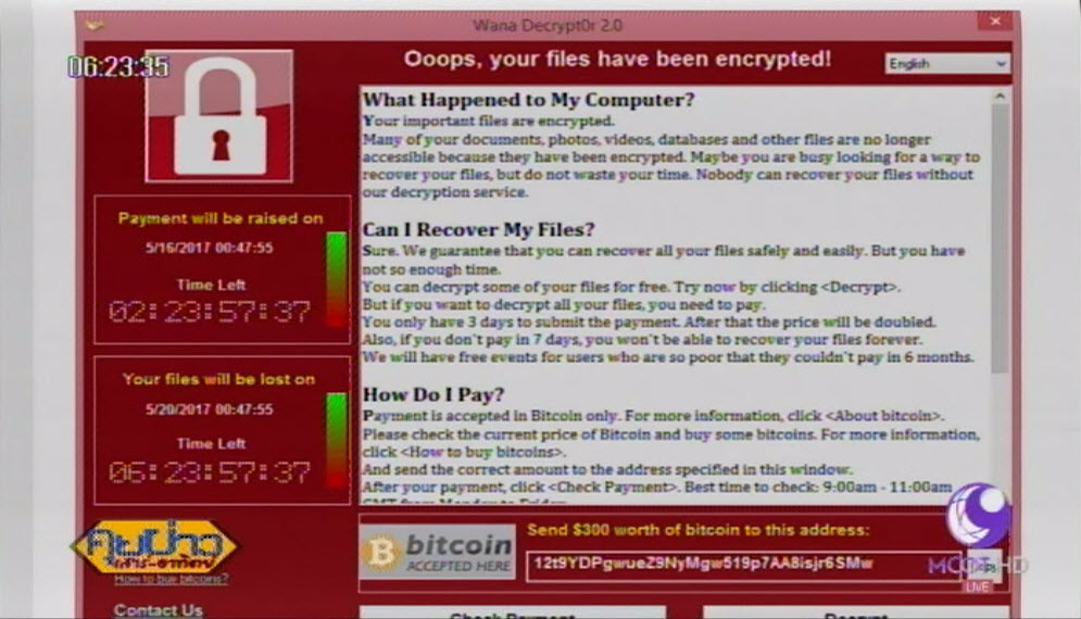 ยุโรป 14 พ.ค.-ตำรวจยุโรป หรือยูโรโพล เร่งติดตามตัวแฮกเกอร์ที่ปล่อยมัลแวร์เรียกค่าไถ่ “WannaCry” ที่ออกอาละวาดคอมพิวเตอร์ใน 99 ประเทศทั่วโลกเมื่อ 2 วันก่อน