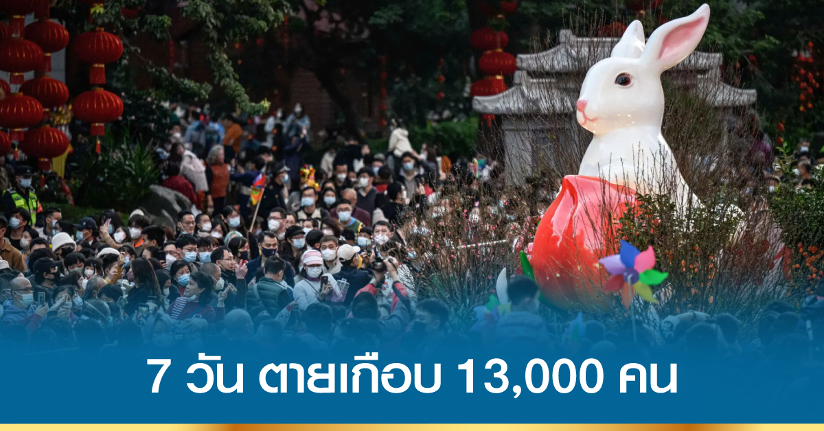 ปักกิ่ง 22 ม.ค.- จีนแจ้งว่า มีผู้เสียชีวิตในโรงพยาบาลจากการติดโรคโควิด-19 เกือบ 13,000 คน ระหว่างวันที่ 13-19 มกราคม ขณะที่ผู้เชี่ยวชาญยืนยันว่า การระบาดทั่วประเทศได้ผ่านพ้นจุดสูงสุดแล้ว