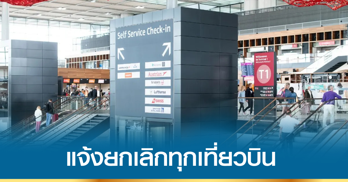 เบอร์ลิน 25 ม.ค.- ท่าอากาศยานเบอร์ลินบรันเดินบวร์ค (BER) ในกรุงเบอร์ลินของเยอรมนี แจ้งยกเลิกเที่ยวบินโดยสารทุกเที่ยวในวันนี้ เนื่องจากพนักงานนัดหยุดงานเรียกร้องขอขึ้นค่าจ้าง