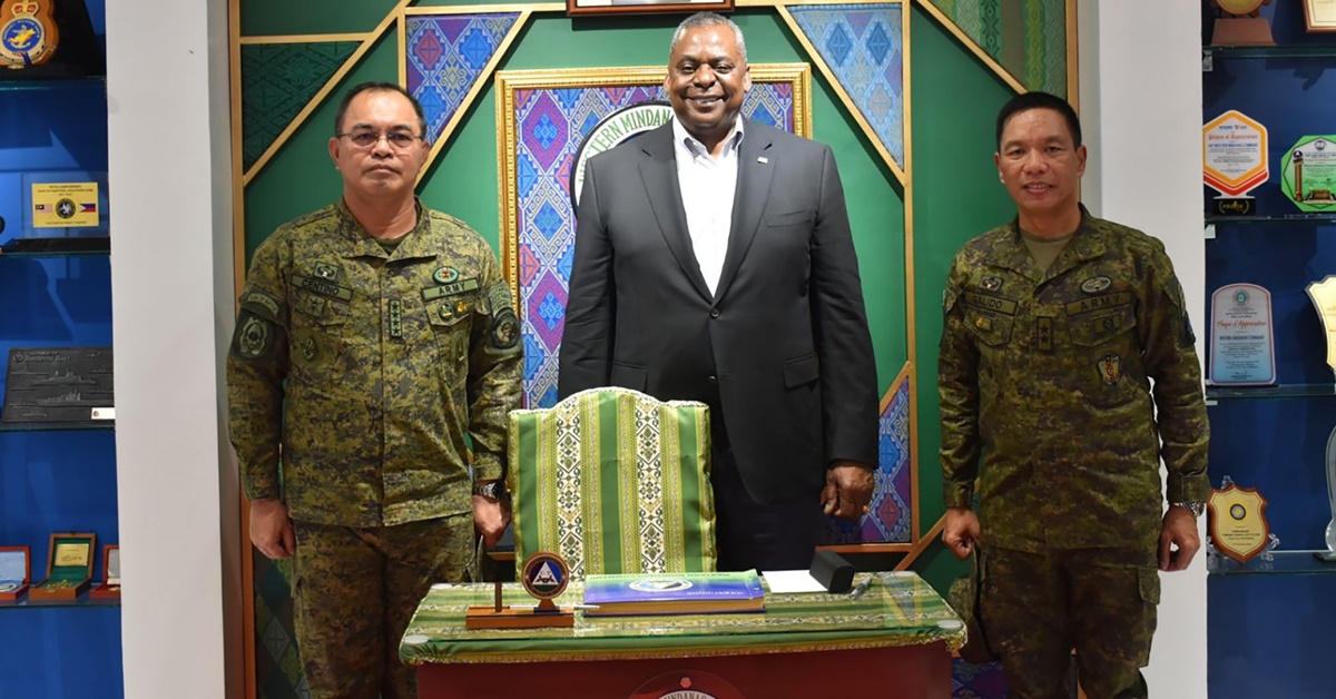 หัวหน้ากองบัญชาการมินดาเนาตะวันตกของฟิลิปปินส์กล่าวกับผู้สื่อข่าวในวันนี้ว่า นายออสตินได้เดินทางไปเยี่ยมกองทหารสหรัฐที่ประจำการอยู่ที่ค่ายทหารในเมืองซัมบวงกา ทางตอนใต้ของฟิลิปปินส์ เมื่อช่วงเช้าวันนี้ การทำงานร่วมกันระหว่างสหรัฐกับฟิลิปปินส์ที่ค่ายทหารแห่งนี้เป็นไปด้วยดี ทั้งยังระบุว่า กองทหารสหรัฐได้ช่วยเหลือฟิลิปปินส์ในด้านการต่อต้านการก่อการร้าย สิทธิมนุษยชน และการรับมือกับภัยพิบัติ