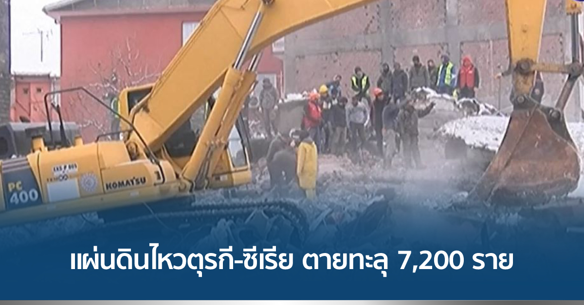 ตุรกี 8 ก.พ. – ยอดผู้เสียชีวิตจากแผ่นดินไหวในตุรกีและซีเรีย เพิ่มขึ้นเป็นมากกว่า 7,200 ราย เจ้าหน้าที่กู้ภัยยังคงเร่งค้นหาผู้ที่ยังติดอยู่ใต้ซากอาคาร ท่ามกลางอุปสรรคทั้งสภาพอากาศหนาวเหน็บ ถนนเสียหายสัญจรไม่ได้ และอาฟเตอร์ช็อกที่เกิดขึ้นอย่างต่อเนื่อง