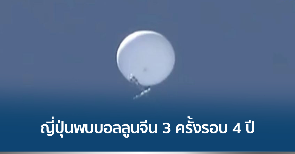 ญี่ปุ่น 16 ก.พ. – ญี่ปุ่นตรวจพบวัตถุบินบริเวณน่านฟ้าอย่างน้อย 3 ครั้ง นับตั้งแต่ปี 60 เป็นต้นมา เชื่อว่าทั้งหมดน่าจะเป็นบอลลูนสอดแนมจากจีน