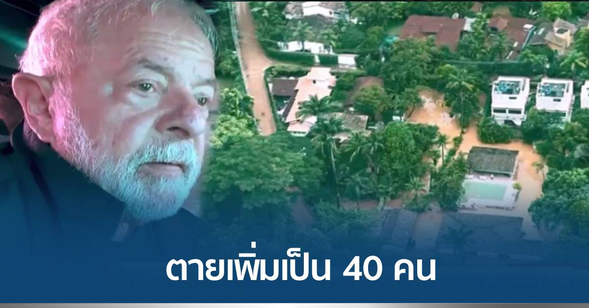 บราซิล 21 ก.พ.- ผู้นำบราซิลเดินทางลงพื้นที่ประสบภัยน้ำท่วมและดินถล่มในรัฐเซาเปาลู ขณะที่ยอดผู้เสียชีวิตล่าสุดเพิ่มเป็น 40 คนแล้ว