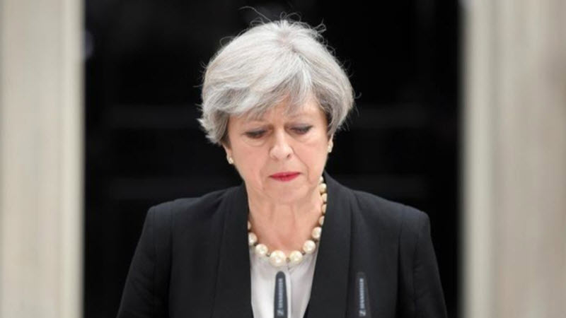 นายกรัฐมนตรีเมย์ แถลงข่าวหน้าบ้านเลขที่ 10 ถนนดาวนิง ในกรุงลอนดอน ซึ่งเป็นบ้านพักอย่างเป็นทางการของนายกรัฐมนตรี เมื่อเวลา 11.00 น. วันนี้ ตามเวลาอังกฤษ ตรงกับเวลา 17.00 น. วันนี้ ตามเวลาในไทย ว่า ชาวเมืองแมนเชสเตอร์และอังกฤษตกเป็นเหยื่อการกระทำของผู้ก่อการร้ายที่ไร้ความเมตตา มุ่งเป้าหมายไปยังเยาวชนที่ไม่สามารถปกป้องตัวเอง หน่วยงานความมั่นคงมั่นใจว่า รู้ตัวผู้ก่อเหตุแล้ว แต่ยังไม่พร้อมประกาศในขณะนี้ เชื่อว่าคนร้ายลงมือเพียงคนเดียว แต่ยังไม่แน่ชัดว่ามีผู้ให้ความช่วยเหลือตระเตรียมการก่อเหตุหรือไม่ นายกรัฐมนตรีเมย์ แถลงหลังเสร็จสิ้นการประชุมคอบรา ซึ่งเป็นคณะกรรมการฉุกเฉินของรัฐ และจะเดินทางไปยังเมืองแมนเชสเตอร์ ในวันนี้