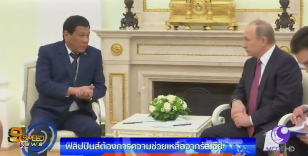รัสเซีย 24 พ.ค.-ประธานาธิบดีโรดริโก ดูเตอร์เต ของฟิลิปปินส์ กล่าวระหว่างพบปะกับประธานาธิบดีวลาดิเมียร์ ปูติน ของรัสเซีย ร้องขอให้รัสเซียจัดส่งอาวุธให้เพื่อใช้ในการปราบปรามการก่อการร้าย หลังเกิดเหตุกลุ่มมุสลิมหัวรุนแรงซึ่งเป็นพันธมิตรกับกลุ่มไอเอส ปะทะกับทหารรัฐบาลฟิลิปปินส์ และบุกยึดเมืองมาราวีบนเกาะมินาดาเนาทางภาคใต้เมื่อวานนี้ ทำให้ประธานาธิบดีดูเตอร์เตประกาศกฎอัยการศึกในภาคใต้เป็นเวลา 60 วัน และต้องร่นเวลาในการเยือนรัสเซียให้น้อยลง เพื่อเดินทางกลับประเทศก่อนกำหนด.-สำนักข่าวไทย
