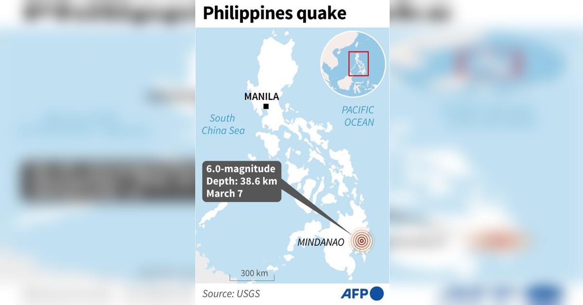 มะนิลา 7 มี.ค.- เกิดแผ่นดินไหวขนาด 6.0 ทางตอนใต้ของฟิลิปปินส์ในวันนี้ ทางการท้องถิ่นเตือนว่า อาจเกิดแรงสั่นสะเทือนหลังแผ่นดินไหวหรืออาฟเตอร์ช็อกติดตามมาและอาจเกิดความเสียหาย