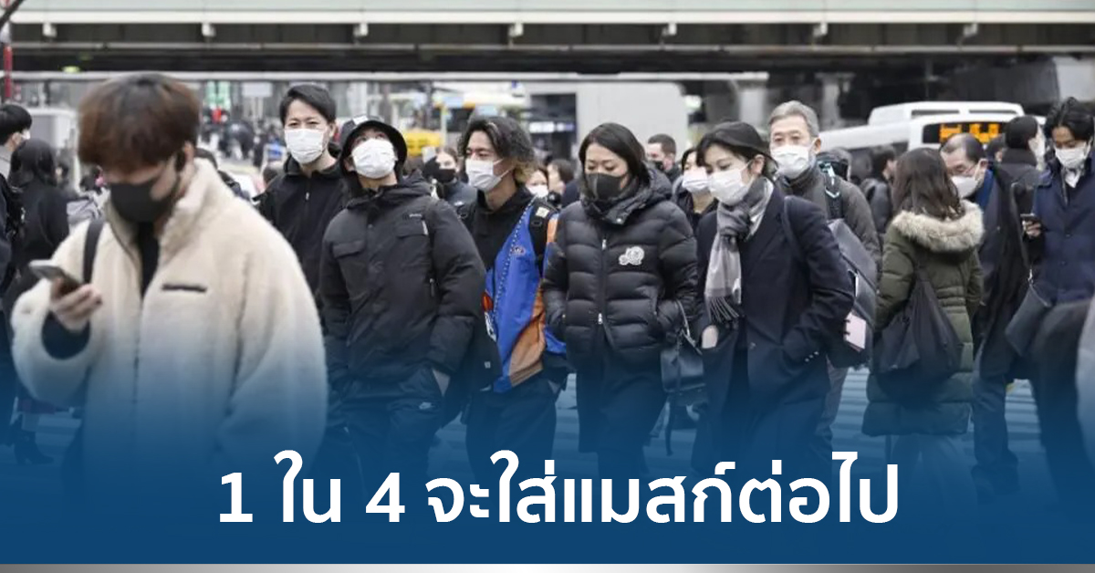 โตเกียว 12 มี.ค.- ผลสำรวจพบว่า คนในญี่ปุ่น 1 ใน 4 จะยังคงสวมหน้ากากอนามัยต่อไปเมื่อต้องพบกับคนอื่น แม้ว่าทางการจะเริ่มผ่อนคลายมาตรการสวมหน้ากากอนามัยตั้งแต่วันที่ 13 มีนาคมก็ตาม