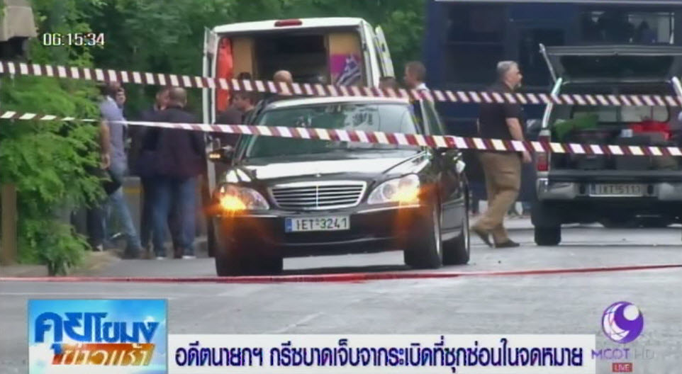 กรีซ 26 พ.ค.-อดีตนายกรัฐมนตรีลูคัส ปาปาเดมอส ของกรีซ ได้รับบาดเจ็บพร้อมกับคนขับรถ หลังเกิดระเบิดภายในรถยนต์ส่วนตัวในกรุงเอเธนส์ เจ้าหน้าที่เชื่อเป็นระเบิดที่ซุกซ่อนในซองจดหมาย