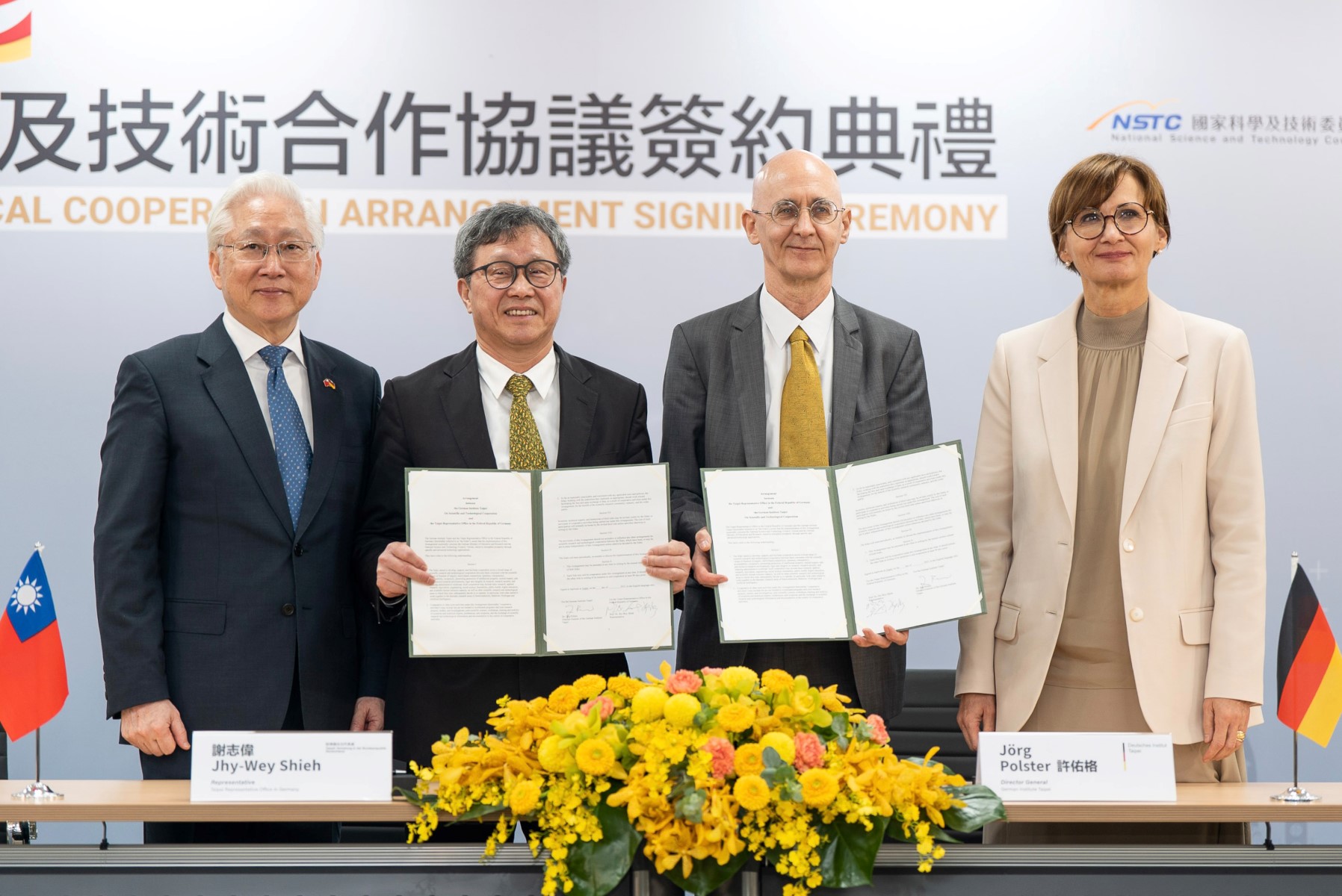 นางเบตทีนา ชตาร์ก-วาตซิงเงอร์ รัฐมนตรีศึกษาธิการของเยอรมนีลงนามข้อตกลงวิทยาศาสตร์และเทคโนโลยีกับสภาวิทยาศาสตร์และเทคโนโลยีแห่งชาติของไต้หวันหรือเอ็นเอสทีซี (NSTC) ในวันนี้ ซึ่งเป็นวันแรกของการเยือนไต้หวัน เธอกล่าวว่า รู้สึกเป็นเกียรติและยินดีอย่างยิ่งที่เป็นรัฐมนตรีเยอรมนีคนแรกที่มาเยือนไต้หวันในรอบกว่า 2 ทศวรรษ เป็นการเยือนเพื่อส่งเสริมความร่วมมือบนพื้นฐานของค่านิยมประชาธิปไตย ความโปร่งใส การเปิดกว้าง การต่างตอบแทน และเสรีภาพทางวิทยาศาสตร์ ด้านประธานเอ็นเอสทีซีกล่าวว่า การเยือนครั้งนี้เป็นส่วนหนึ่งของการแลกเปลี่ยนตามปกติ ข้อตกลงที่ลงนามในวันนี้ครอบคลุมเรื่องการร่วมวิจัยในหลายด้าน เช่น เซมิคอนดักเตอร์หรือชิป เทคโนโลยีปัญญาประดิษฐ์หรือเอไอ (AI)