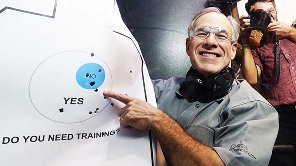 นายแอบบอตต์ วัย 59 ปี ผู้ว่าการรัฐเทกซัสสมัยแรกจากพรรครีพับลิกัน อวดฝีมือการยิงปืนที่สนามยิงปืนในเมืองออสตินหลังลงนามร่างกฎหมาย และพูดเล่นขณะถือเป้าที่มีรูกระสุนว่าจะพกเป้านี้ติดตัวไว้เวลาเจอผู้สื่อข่าว หนังสือพิมพ์เทกซัสทริบูนลงภาพเขายิ้มกว้างขณะชี้ไปที่กลางเป้าซึ่งมีรูกระสุนอยู่ 3 รู กลุ่มผู้สื่อข่าวไร้พรมแดนในกรุงปารีสของฝรั่งเศสและกลุ่มรณรงค์ป้องกันเหตุรุนแรงจากปืนในกรุงวอชิงตันของสหรัฐพากันตำหนิว่า เป็นการพูดเล่นที่อันตรายและเกินขอบเขต โดยเฉพาะในประเทศอย่างสหรัฐที่บุคคลอันตรายยังคงซื้อหาปืนได้โดยไม่ถูกตรวจสอบประวัติ บุคคลทางการเมืองจึงควรระมัดระวังอย่างยิ่งที่จะไม่สนับสนุนการใช้ความรุนแรง