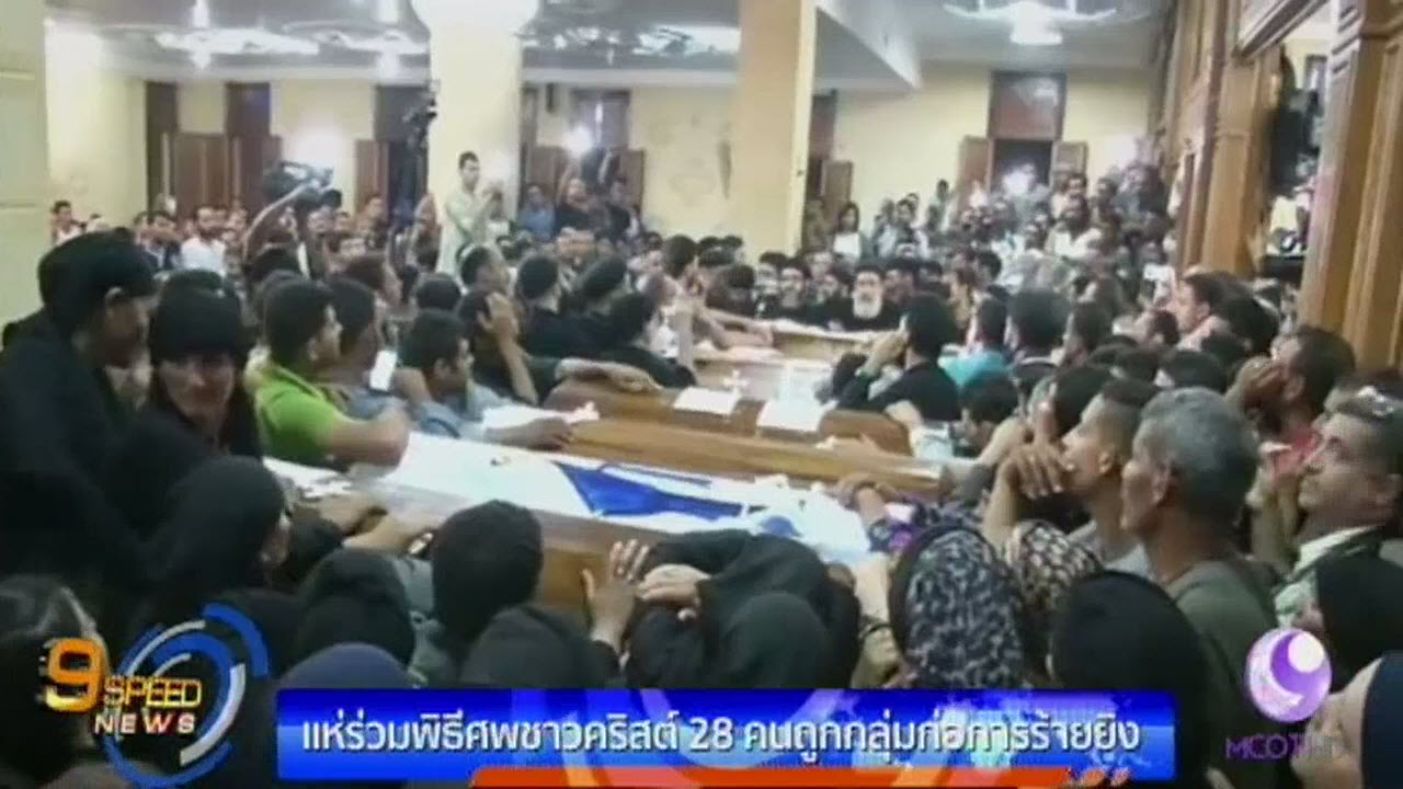 อียิปต์ 27 พ.ค.-ชาวอียิปต์หลายพันคน ร่วมพิธีศพของชาวคริสต์นิกายคอปติก 28 คน ซึ่งเสียชีวิตจากการถูกมือปืนสวมหน้ากากโจมตี ขณะอยู่บนรถโดยสาร ระหว่างเดินทางกลับจากการประกอบศาสนกิจ อย่างไรก็ตาม พิธีศพกลายเป็นการประท้วงรัฐบาล เนื่องจากไม่พอใจที่ไม่สามารถคุ้มครองชาวคริสต์จากการโจมตีของกลุ่มก่อการร้าย ด้านผู้เห็นเหตุการณ์ระบุ กลุ่มมือปืนได้จี้บังคับรถโดยสารและรถคันอื่นให้หยุด ก่อนบังคับชาวคริสต์ให้ลงจากรถและลั่นไกสังหาร ก่อนหลบหนีไปอย่างลอยนวล.-สำนักข่าวไทย