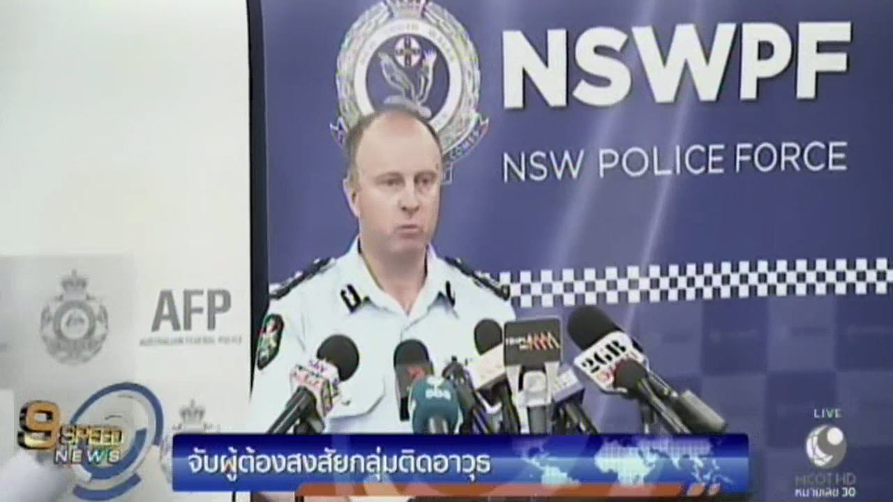 ออสเตรเลีย 3 พ.ย.-ตำรวจออสเตรเลีย แถลงข่าวการบุกจับกุมผู้ต้องสงสัย 2 คน ในนครซิดนีย์ โดยรายแรกเป็นชายที่ต้องสงสัยว่าเข้าร่วมสู้รบกับกลุ่มติดอาวุธในซีเรีย ส่วนอีกคนเป็นวัยรุ่น ที่วางแผนจะเดินทางไปเข้าร่วมขบวนการกับกลุ่มติดอาวุธ รัฐอิสลามในตะวันออกกลาง การจับกุมดังกล่าวตอกย้ำถึงจุดยืนของออสเตรเลีย ในการสกัดกั้นไม่ให้ผู้คนเดินทางไปเข้าร่วมกลุ่มติดอาวุธในประเทศต่างๆ รวมทั้งซีเรีย และอิรัก.-สำนักข่าวไทย