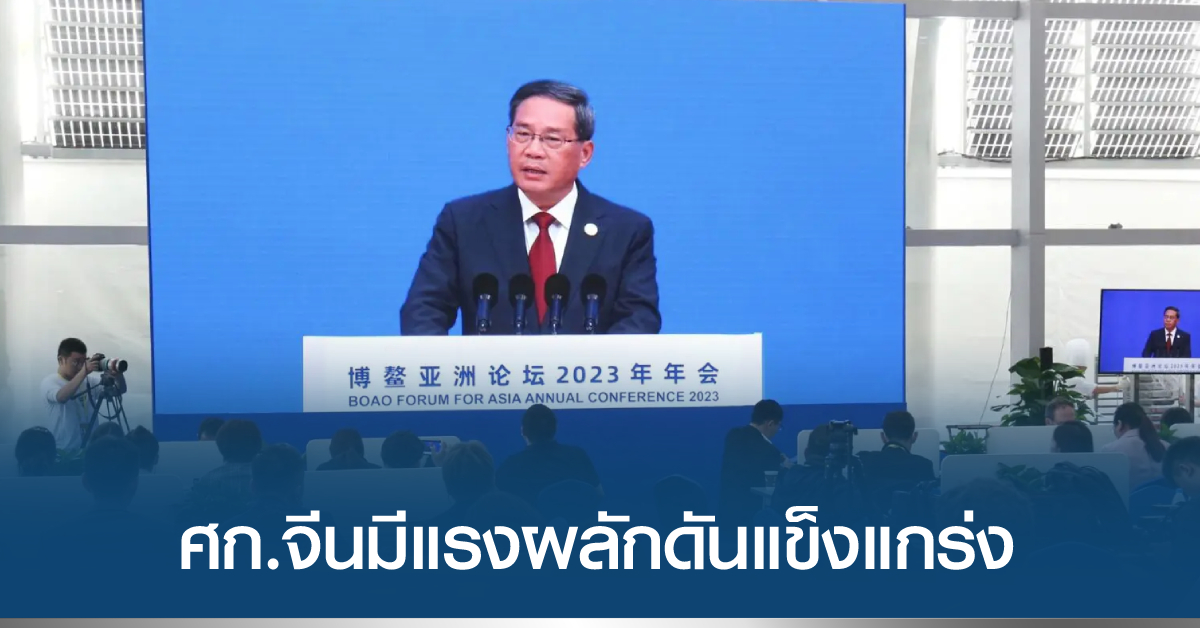 นายกรัฐมนตรีหลี่ กล่าวสุนทรพจน์ต่อผู้นำทางการเมืองและธุรกิจ ในการประชุมฟอรัมเอเชียโป๋อ๋าว ประจำปี 2566 บนเกาะไห่หนานหรือไหหลำ ทางใต้ของจีน ในวันนี้ ซึ่งเป็นการเข้าร่วมการประชุมสากลครั้งแรกของเขา นับจากได้รับแต่งตั้งให้ดำรงตำแหน่งนายกรัฐมนตรีเมื่อต้นเดือนนี้