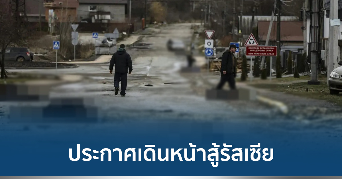 เคียฟ 2 เม.ย.- ผู้บัญชาการทหารสูงสุด (ผบ.สส.) ของยูเครนประกาศในวันนี้ว่า จะเดินหน้าสู้กับรัสเซียต่อไป ครบหนึ่งปีที่โลกได้เห็นภาพพลเรือนชาวยูเครนถูกสังหารหมู่ในเมืองบูจา หลังจากรัสเซียถอนกำลังออกไปได้ไม่กี่วัน